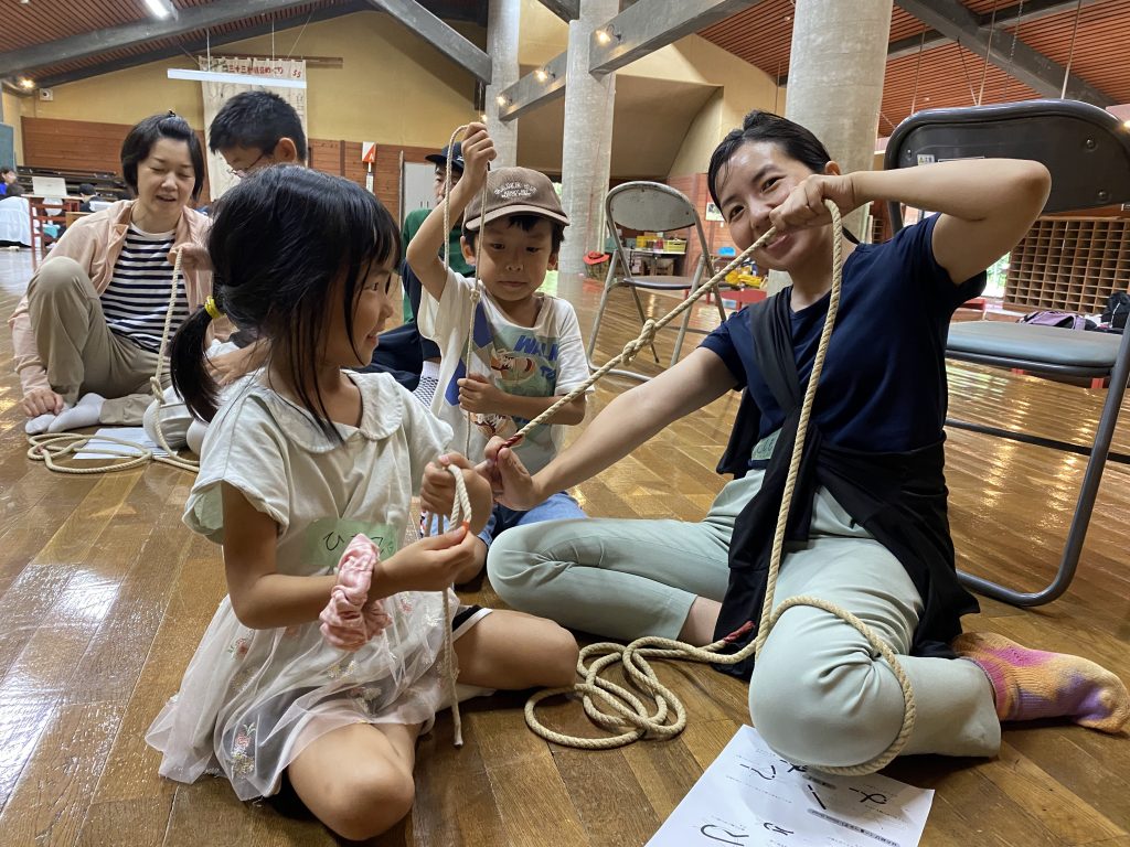 普段の生活やいざというとき役立つロープ結びです。参加者の方もよく知っている結びの応用から、難しめの結びなどに挑戦しました。