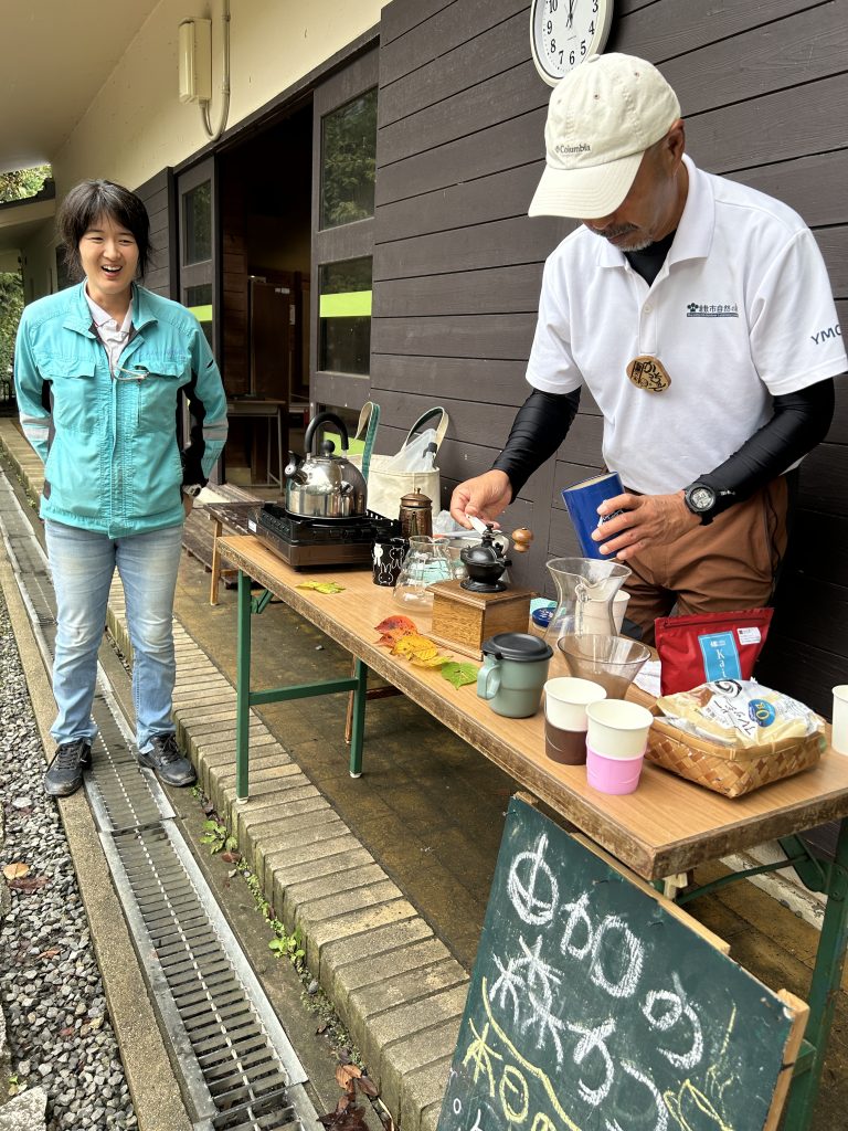 大人の方は、大好評の「森カフェ」で大人同士で話をしたり、景色を眺めながら香り立つコーヒーを飲みながら、まったりとした時間を過ごしました。最後におやつの梨2種類の食べ比べをして、美味しい秋を感じました。