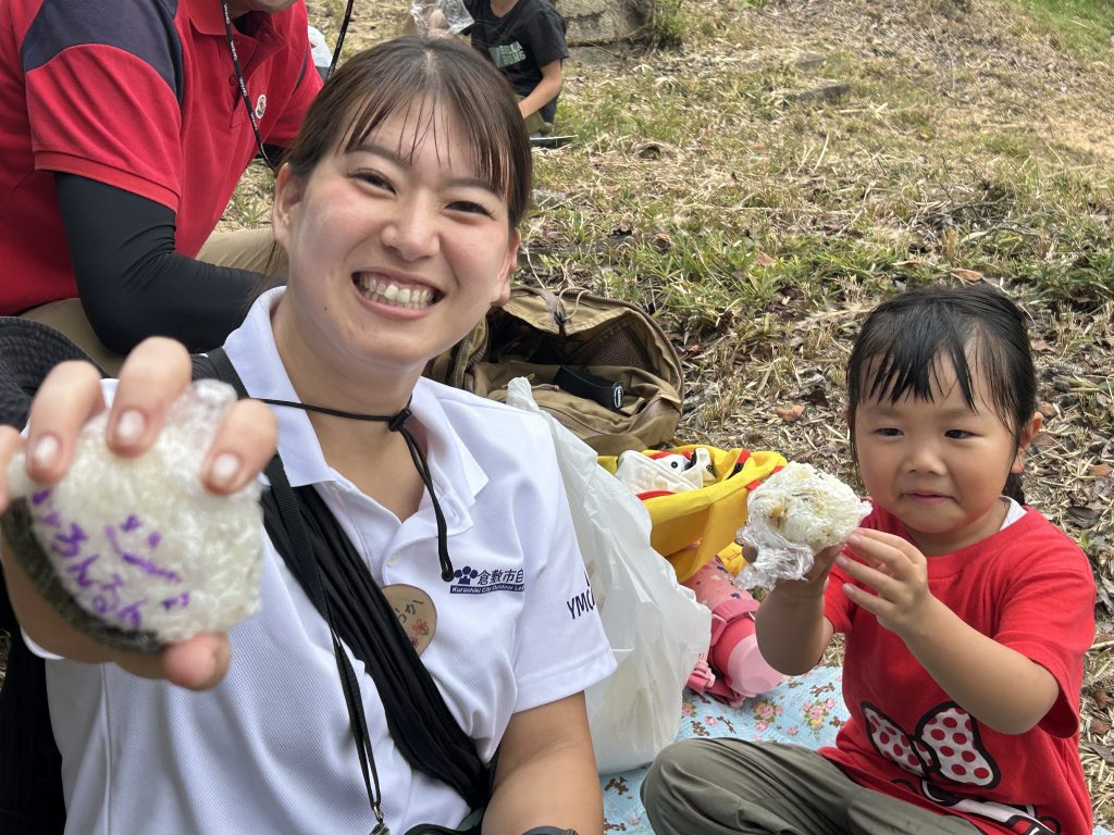4月のハイキング・春編と同じく、まずはハイキング準備として、おにぎりを作りました。持参した具材を入れたり混ぜたりして、にぎりました。大きさや形もさまざまなおにぎりが完成し、ハイキングの準備が整いました。