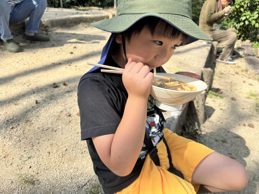 竹のお椀を使って食べたり、何度もおかわりをしてお腹いっぱい食べていました。