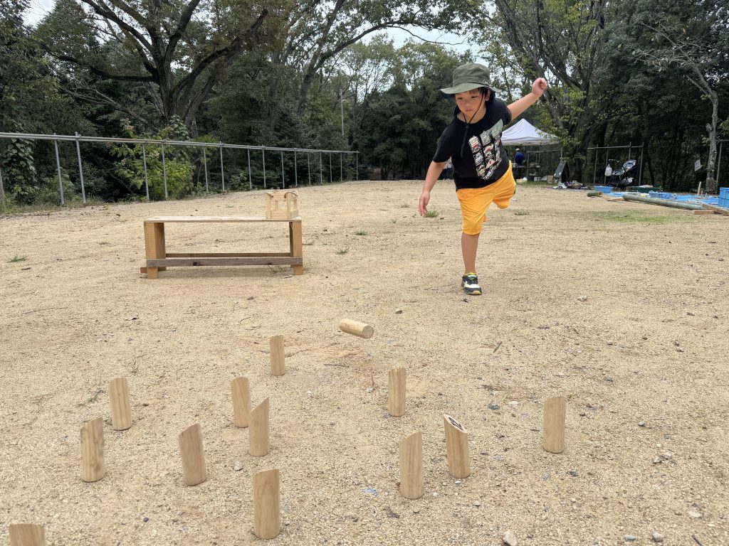 モルックに挑戦したり、メスティンでポップコーンを作り、「パンパン」と弾ける音に「すごーい」と興奮していました。また、家族同士だけでなく、今日出会ったこどもたち同士で遊ぶ姿があり、またリーダーを落とし穴に落とそうと、協力して穴を掘り、リーダーを落として楽しんでいました。