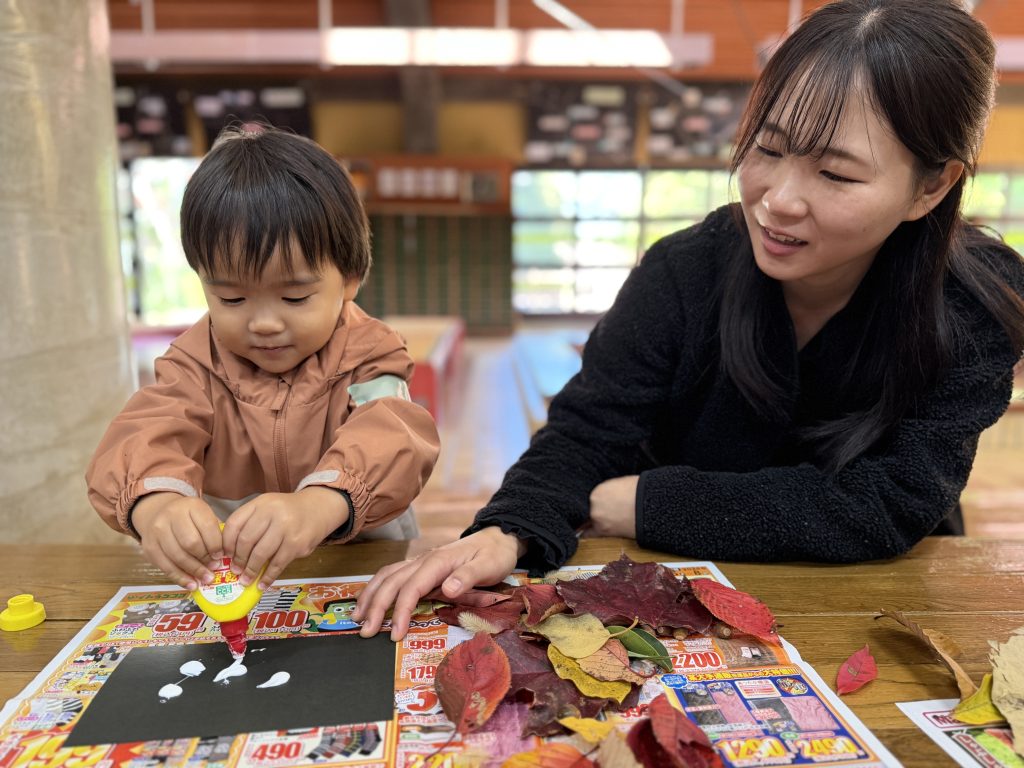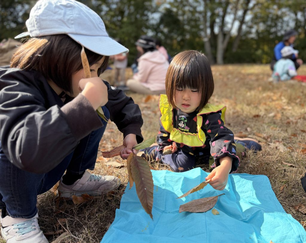 暦は「小雪」。例年なら冬の足音が聞こえてくる時期ですが、年々遅くなっていますね。今年もまだまだで、紅葉も落ち葉もこれからです。そんな中、この時期ならではのいろいろな葉っぱを拾ってゲームをし、晩秋の自然を楽しみました。