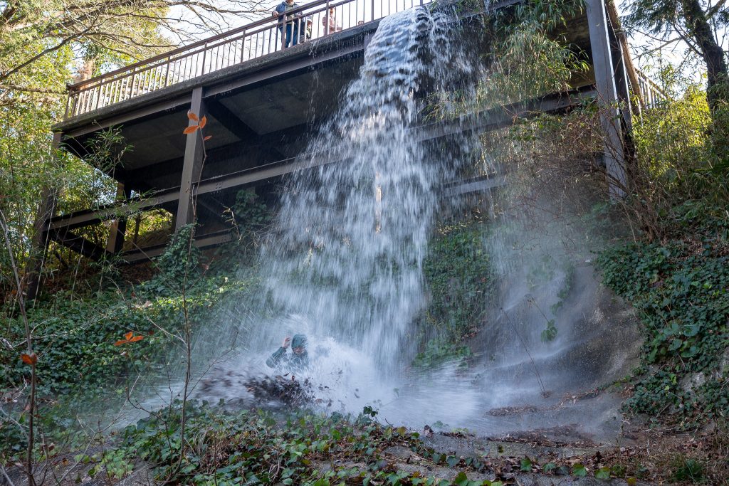 午後には、1月恒例となっている滝行も行われました。今回はドラム缶を3つ用意し、リーダーが声をかける前から、参加者同士で準備が進んでいく様子が見られました。お父さんやお母さんも自然と準備に加わり、「できたよ」と声をかけてくれる場面もあり、この1年間での参加者の関わり方の変化や成長を感じました。勢いよく落ちる水に、一瞬で全身がびしょ濡れになり、1月とは思えないほどの水遊びとなりましたが、終始楽しそうな表情があふれていました。