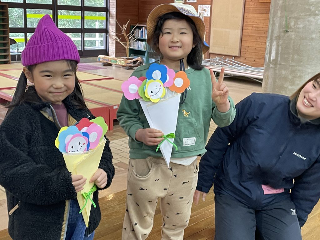 4月からピカピカの一年生になるお友だちの紹介や、リーダーたちが1年間の思いを込めて手作りした「修了証」のプレゼント。メッセージを受け取るこどもたちの表情はとても嬉しそうにリーダーから受け取りました。